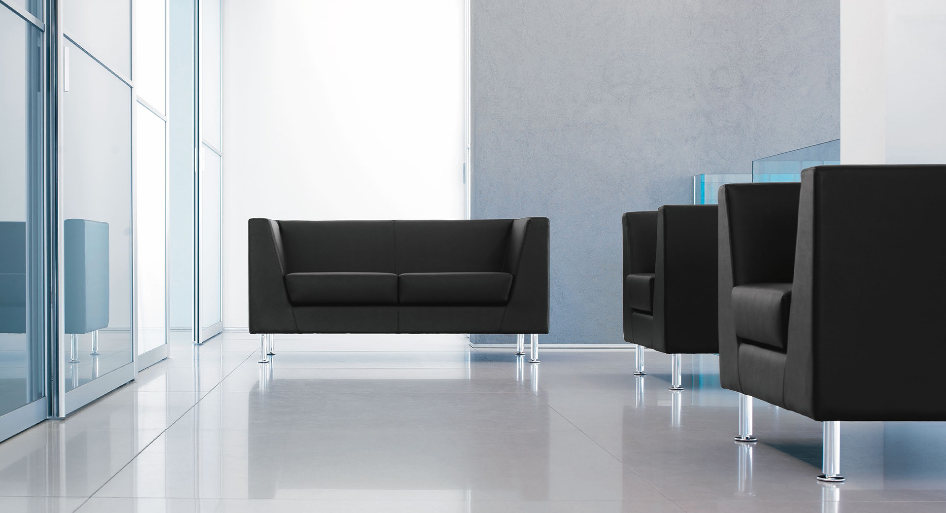 Varieties include single armchairs, two- and three-seat sofas, and one- and two-seat poufs, making the collection highly modular for fitting spaces of any size. The legs are available in tubular, steel gray-coloured aluminium or a chrome-plated finish. The entire system is designed to be effortlessly combined, allowing designers to create tailored, comfortable, and elegant seating arrangements.