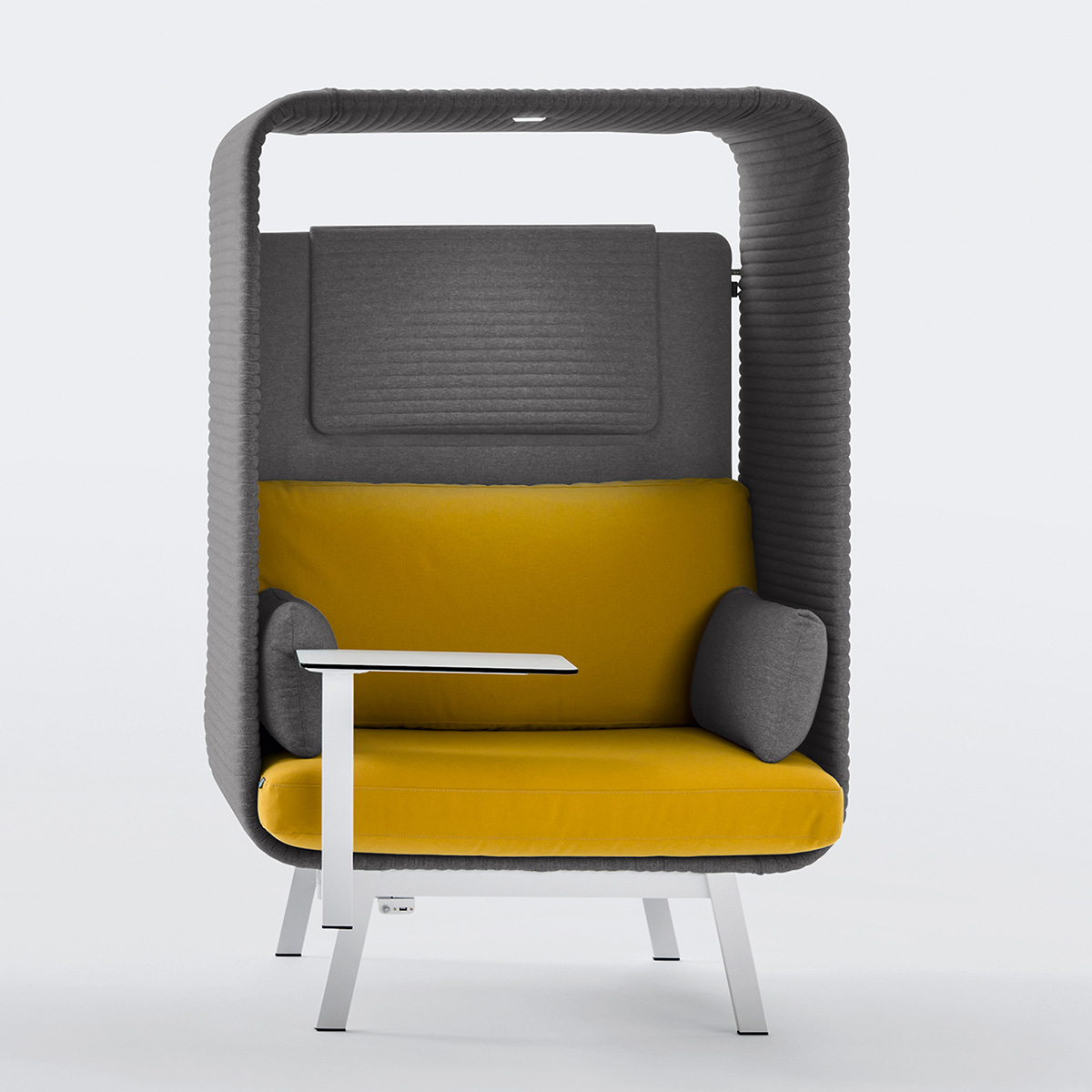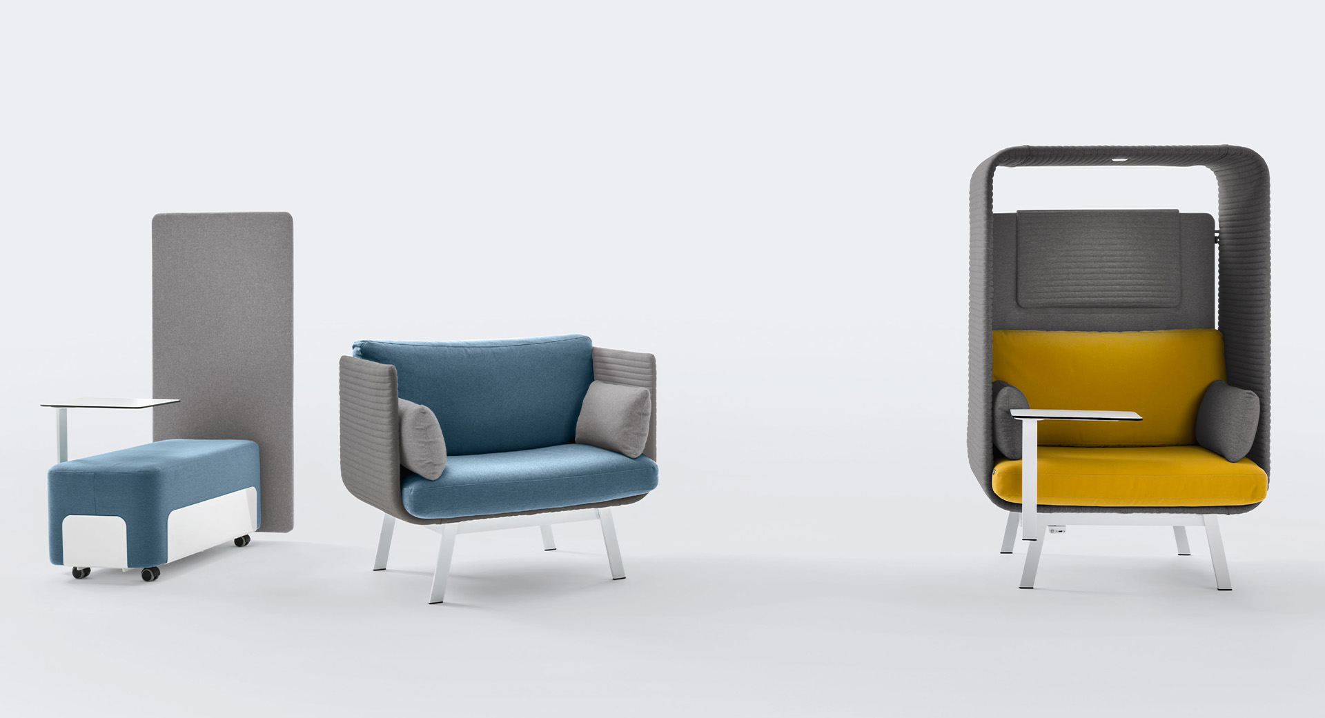Varieties include the signature armchair with high back and sides, as well as coordinating Privée poufs for flexible seating in waiting areas. The collection’s aesthetic is robust and enveloping, ensuring comfort while visually and acoustically separating the user from the surrounding bustle. The design is an excellent choice for organizations looking to blend open collaboration with moments of quiet focus.